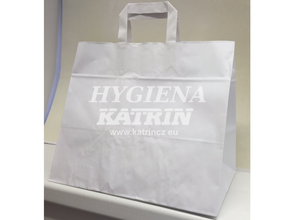 Taška papírová s plochým uchem bílá, určená především na odnos menuboxu s jídlem.