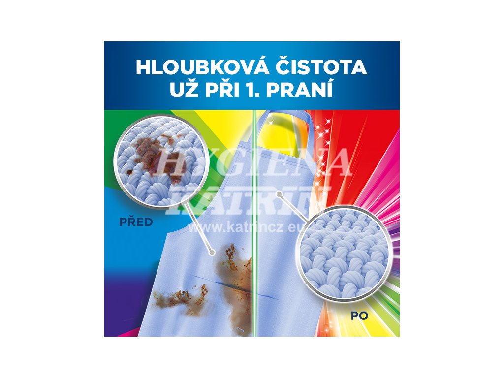 Gelové kapsle na barevné prádlo Ariel Professional Color pro profesionální provozy přichází s inovativním obalem ve formě kapslí s jemným filmem na povrchu. Obal se při kontaktu s vodou úplně rozpustí a uvolní účinné látky odstraňující široké spektrum skvrn. Kapsle má unikátní vícekomorový design, který udrží jednotlivé složky stabilně oddělené do doby, než se namočí. Nejvýkonnější tekutá forma Arielu. Jednoduchý způsob dávkování umožňuje přesnou kontrolu nákladů. Účinné už při teplotách od 30 °C. Perfektně účinkují při všech úrovních tvrdosti vody. Uzamykají barvy do hloubky vláken a udržují je tak dlouho syté.